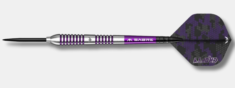 Set uključuje ljubičaste Mission Sabre nastavke s crnim aluminijskim vrhom, crni vrh i laserski ugraviran Mission logotip u središnjem dijelu barrel-a, što osigurava profesionalan završetak i prepoznatljiv identitet.
